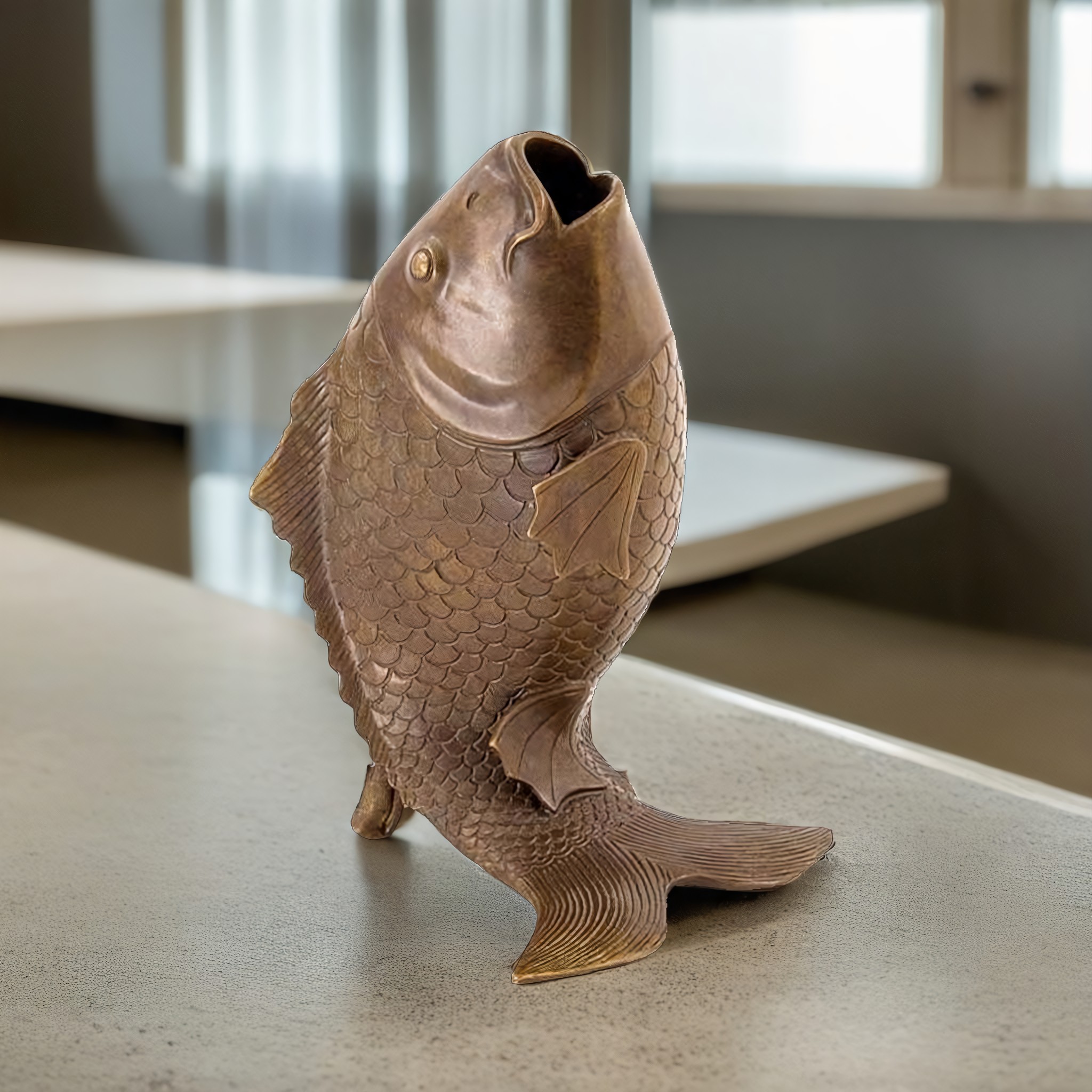 Любителям изысканного декора и уникальных произведений искусства посвящается! Представляем нашу новую шедевральную реплику — бронзовую композицию «Карп». Этот предмет интерьера наверняка привлечет внимание вашего глаза и станет замечательным дополнением к любому дизайну. Выполненная из высококачественной бронзы, эта статуэтка не только выделяется своей детализацией, но и своим весом. каждая чешуйка, каждый поворот тела карпа — все это проработано мастерами в мельчайших подробностях, чтобы дать вам чувство почтения перед мощью и грацией этой рыбы.