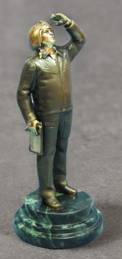 Спешим представить вам уникальное предложение от нашего магазина — бронзовую статуэтку Авиатор. Этот изысканный предмет коллекционирования выдержан в лучших традициях старинных оловянных солдатиков, выполнен из яркой и блестящей бронзы. Он привнесет в ваш интерьер атмосферу авантюризма, отваги и завоевательного духа века открытий. Но настоящей изюминкой является основание статуэтки. Оно выполнено из натурального змеевика — редкого геологического минерала необычного змеиного оттенка. Его сверкающие зелени и бронзовые вкрапления придают статуэтке дополнительную привлекательность и блеск. «Авиатор» — не просто украшение, это символ смелости, упорства и стойкости духа, истинного покорителя небес! Приглашаем вас дополнить свою коллекцию этим роскошным и мужественным шедевром! |