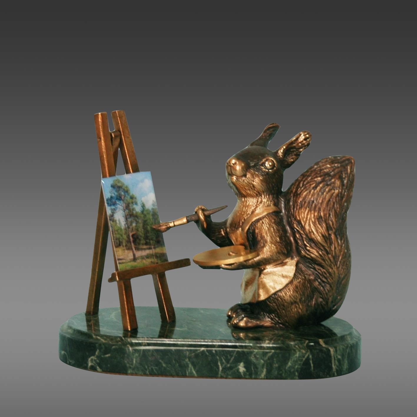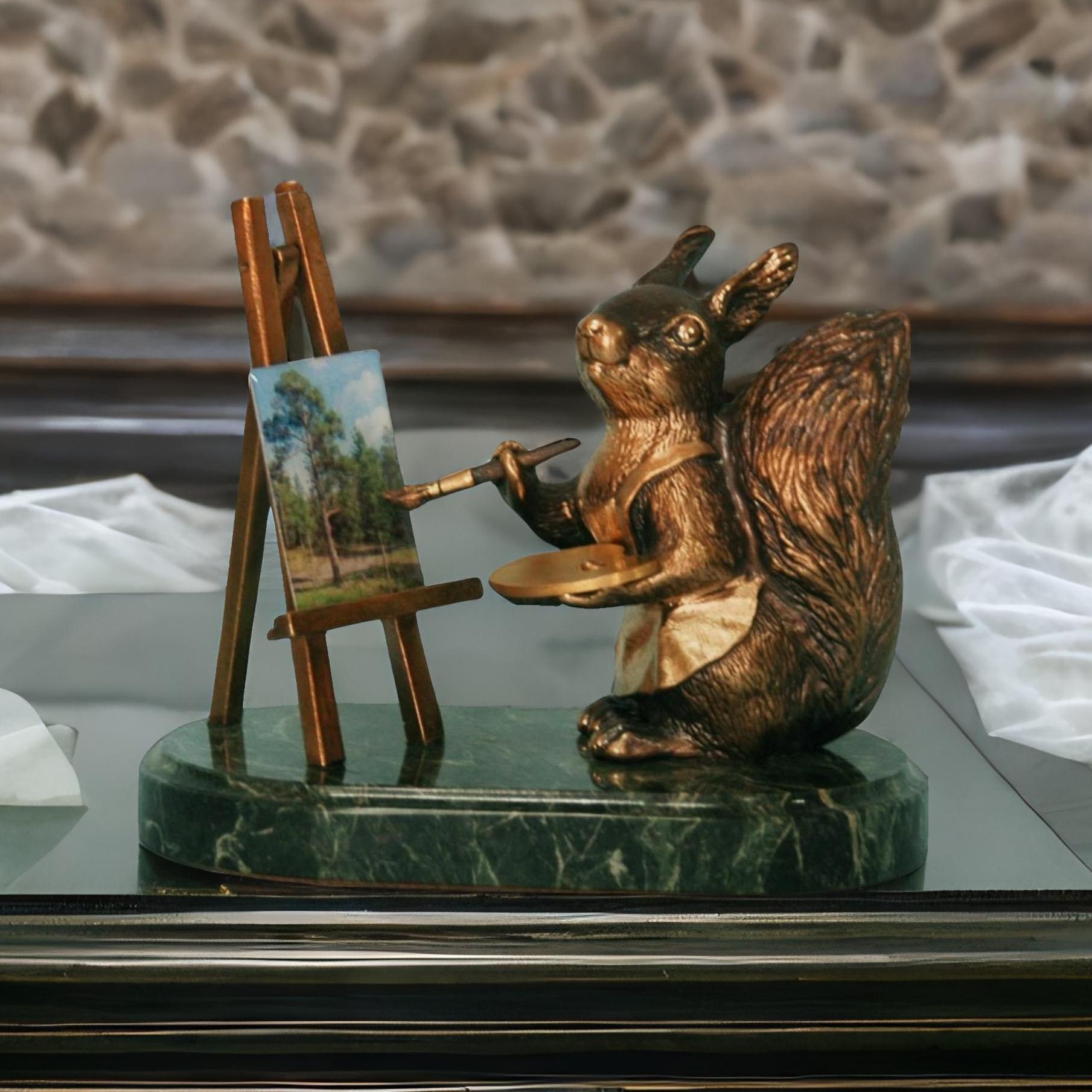Почувствуйте неповторимую атмосферу творческой студии, которую приносит с собой бронзовая статуэтка Белка-художница.