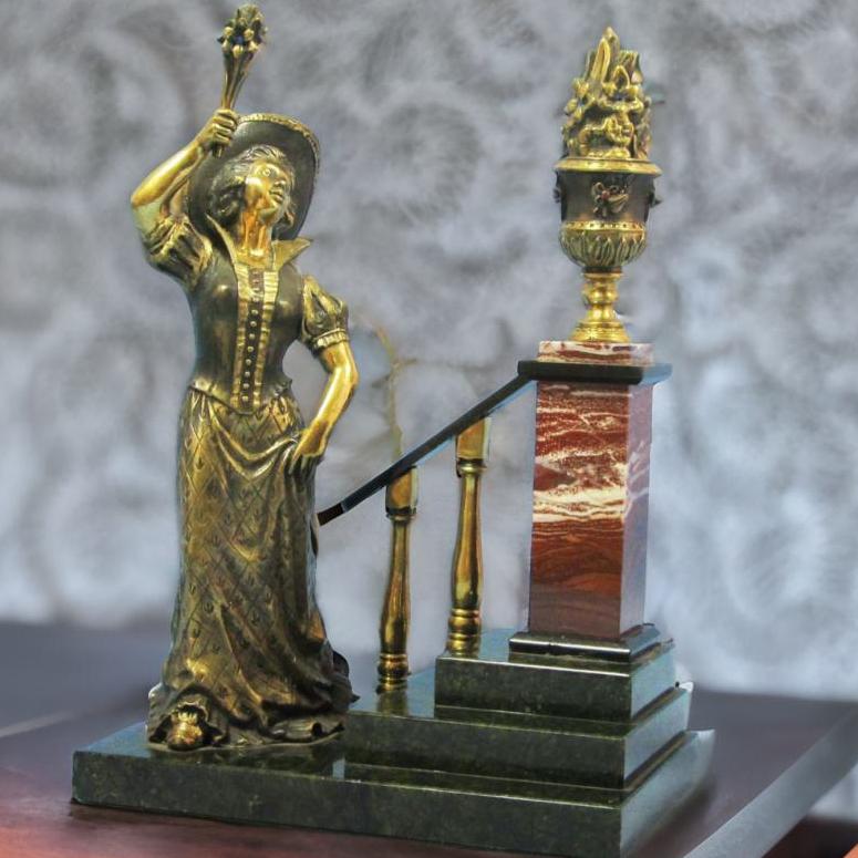 Оживите свой интерьер с помощью нашей превосходной статуэтки Дама с цветами. Это прекрасное произведение искусства, выполненное из высококачественной бронзы, впечатляет своей изысканностью и вниманием к деталям. Дама с цветами придаст вашему пространству винтажный шарм и элегантность. Статуэтка выполнена ручной работой мастерами бронзового литья, которые тщательно прорабатывают каждую деталь. Она станет настоящим украшением вашего дома или идеальным подарком для ценителей искусства. Дама с цветами — воплощение изящества и тонкого стиля. Очаровывает своим обаянием и неповторимым шармом.. |