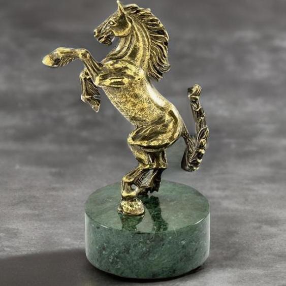 Уникальный элемент декора и превосходный подарок — бронзовая статуэтка Конь на дыбах. Сочетание классического стиля и качественных материалов создает утонченный образ, который придется по вкусу каждому! Это идеальное украшение для любого интерьера и подтверждение отменного вкуса его владельца. Основание статуэтки выполнено из змеевика — камня богатого зеленого оттенка с характерным рисунком. Этот природный камень придает изделию еще большей ценности, а также уникального, завораживающего вида. Детально проработанная бронза, из которой выполнена сама статуэтка, подчеркивает динамику и величие коня, стоящего на задних ногах. |