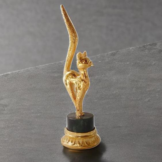 Данная статуэтка «Кошка для колец» является, несомненно, роскошным и крайне полезным приобретением для любой дамы. Она изготовлена из латуни с применением золочения и никелирования и установлена на подставку из натурального змеевика. Также статуэтка украшена миниатюрными фианитами, придающими изделию изысканный блеск. Такой подарок наверняка понравится Вашей супруге или любимой маме. |