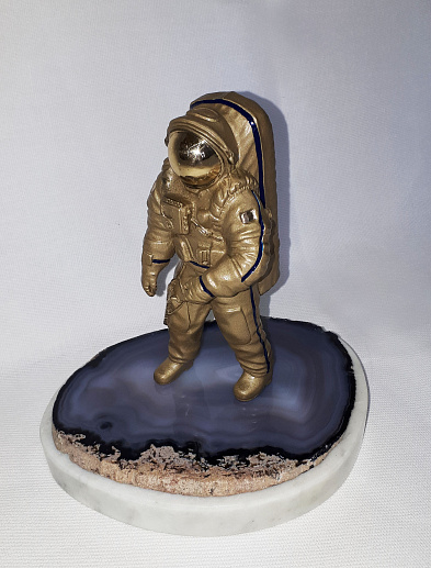 Вашему вниманию представляется эксклюзивная бронзовая статуэтка Космонавт, выполненная из бронзы и украшенная агатом. Этот стильный предмет интерьера безусловно добавит изысканности вашему дому или станет отличным подарком для любителей космоса. Наша статуэтка олицетворяет бесстрашие, решительность и стремление к освоению нового, что так важно для каждого космонавта. Данную статуэтку отличает высокое качество материалов и мастерство исполнения. Изящество форм и детальная проработка всех элементов в сочетании с натуральным агатом делают это произведение искусства настоящим украшением.
