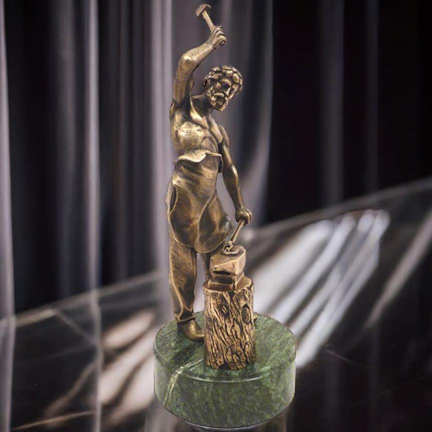 Впечатляющая бронзовая статуэтка Кузнец украсит интерьер любого дома или офиса. Это прекрасный подарок для друзей, семьи или бизнес-партнеров. Высокое качество: наша статуэтка изготовлена из прочного и долговечного материала — бронзы. Она будет радовать вас своим видом на протяжении многих лет. Это не просто статуэтка, это произведение искусства, которое подчеркнет ваш вкус и стиль. Этот прекрасный предмет декора в форме кузнеца, трудящегося у наковальни, создаёт ощущение уюта и комфорта. Его можно поставить на камин, стол или полку. Где бы он ни находился, он будет привлекать взгляды своей уникальностью и красотой. |
