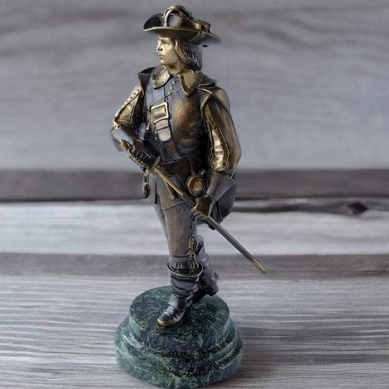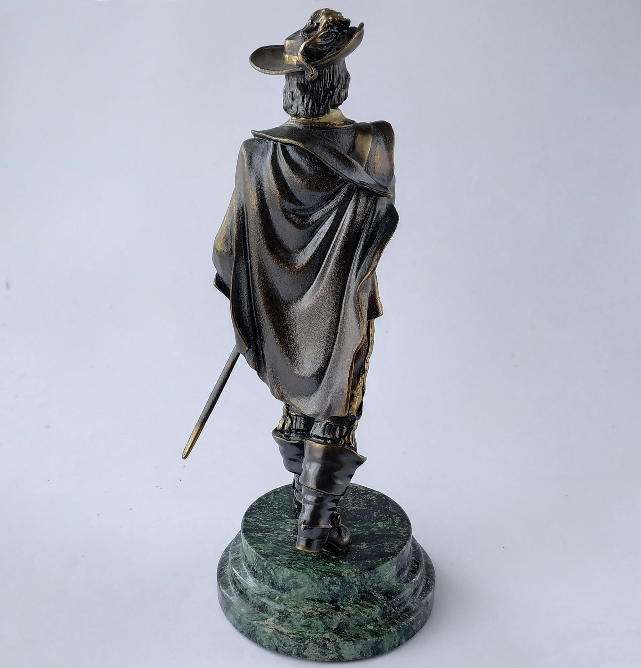 Привнесите оригинальный и уникальный акцент в интерьер вашего дома или офиса, выбрав в качестве украшения бронзовую статуэтку Мушкетер на подставке из змеевика. Этот изысканный предмет интерьера привнесёт в ваше пространство атмосферу старой Европы и добавит вашему интерьеру глубины и изысканности. Мушкетеры — это не просто солдаты. Это — люди чести, люди идеи. Их легендарная репутация и сегодня вызывает восхищение. Именно поэтому статуэтка Мушкетер отражает безупречный вкус и приверженность высшим ценностям. Произведена наша статуэтка из бронзы — материала, известного своей долговечностью и пластичностью. Это подчеркивает талант художника, воссоздавшего детали с полной точностью. Подставка из змеевика добавляет изделию аристократического обаяния. Оставьте свой отпечаток в дизайне своего пространства с помощью этой великолепной бронзовой статуэтки Мушкетер. |