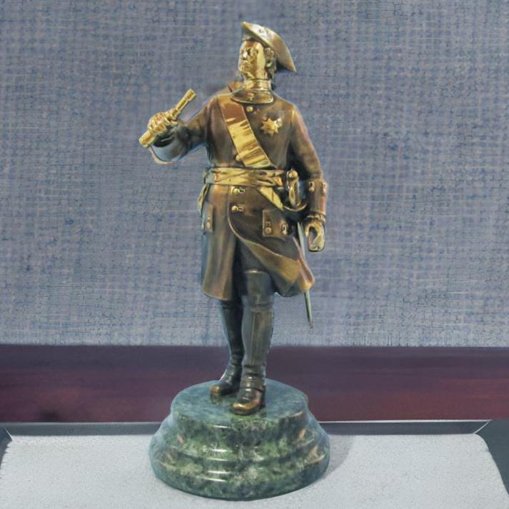 Представляем вашему вниманию бронзовую статуэтку Петр 1 — истинное произведение искусства, подчеркивающее величие и авторитет первого Российского императора. Статуэтка изготовлена из качественного бронзового сплава и установлена на оригинальное основание из редкого змеевика. «Этот уникальный сувенир прекрасно украсит Ваш стол, камин или книжный шкаф, став настоящим украшением любого интерьера» Статуэтка Петр 1 — это отличный выбор для коллекционирования или в качестве подарка. Такой сувенир будет достойно оценен ценителями истории и искусства. |