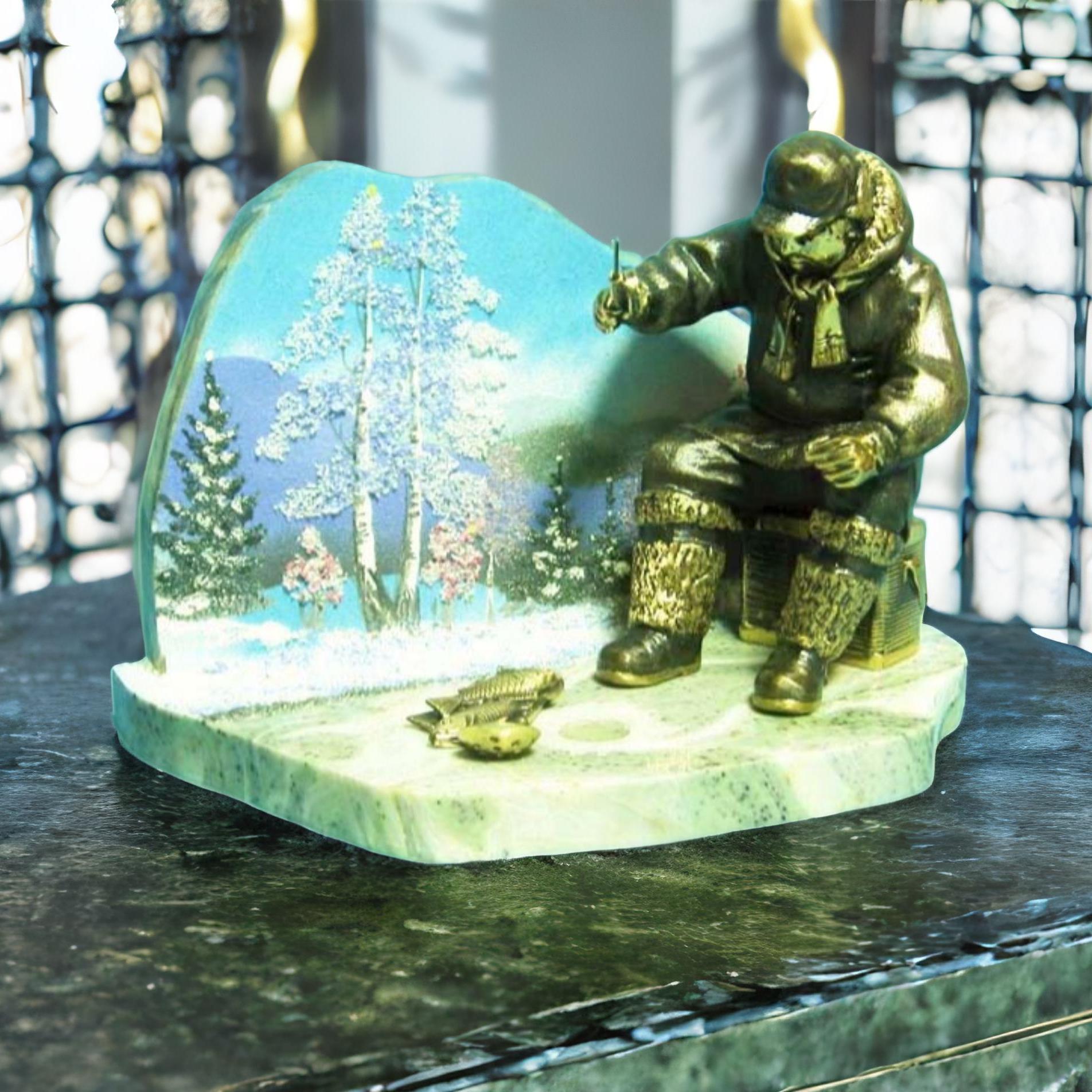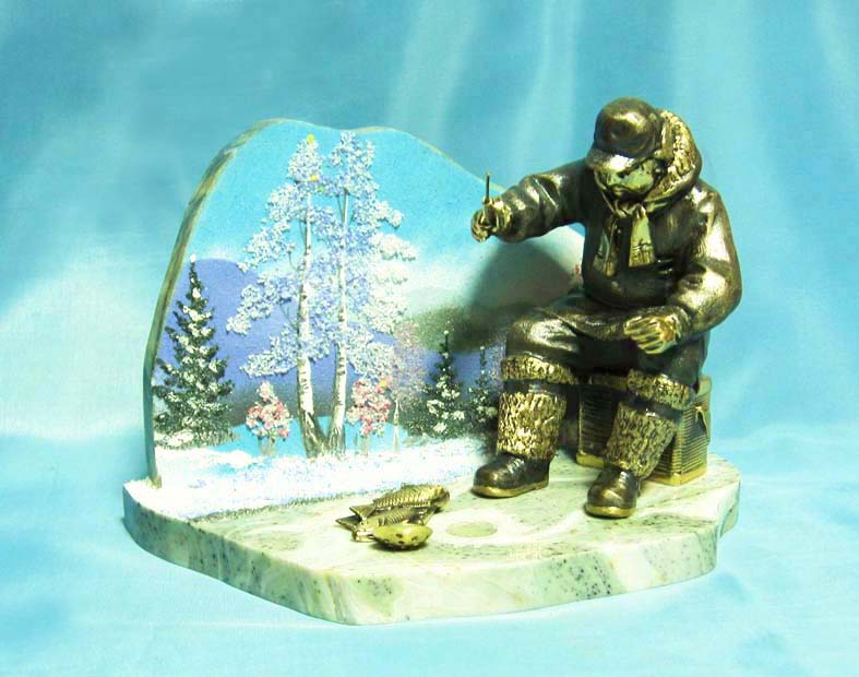 Бронзовая статуэтка "Рыбак зимний" (агат)