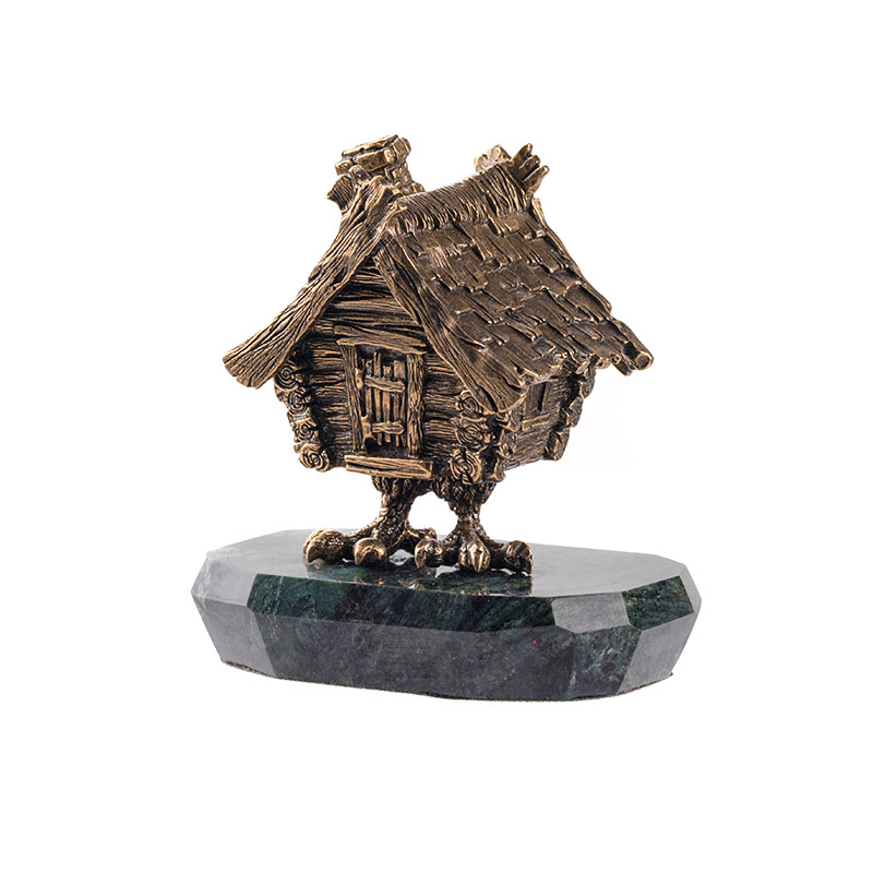 Мы предлагаем вам необыкновенную шкатулку для украшений, сделанную из качественной бронзы. Изящно выполненная в форме избушки на курьих ножках из народной сказки, она не только станет незаменимым атрибутом на вашем туалетном столике, но и украсит интерьер. Эта шкатулка особенно подходит для тех, кто ценит русский стиль и уникальные вещи. Основание шкатулки выполнено из змеевика, природного минерала с зеленовато-серой окраской и глянцевым блеском, что придает ей еще большей привлекательности и оригинальности. |