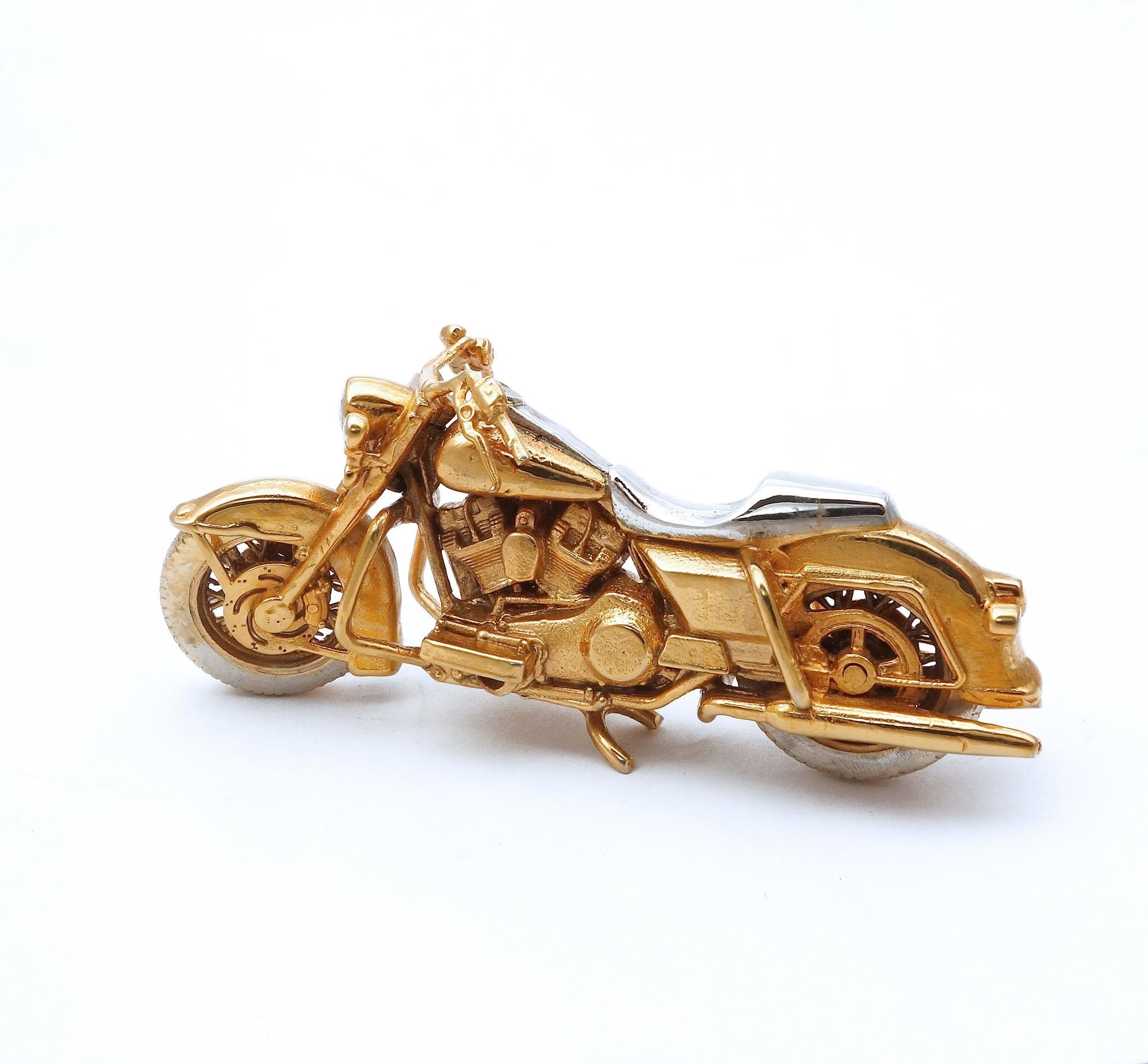 Элегантная бронзовая статуэтка, выполненная в форме мотоцикла и покрытая золотом — это уникальный предмет искусства и коллекционирования. Этот произведение искусства отражает утонченность и мастерство его создателя.