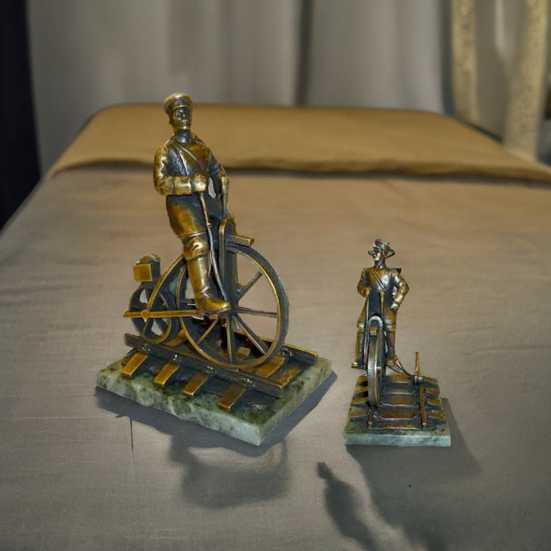 Бронзовая статуэтка ЖД смотритель на велосипеде
