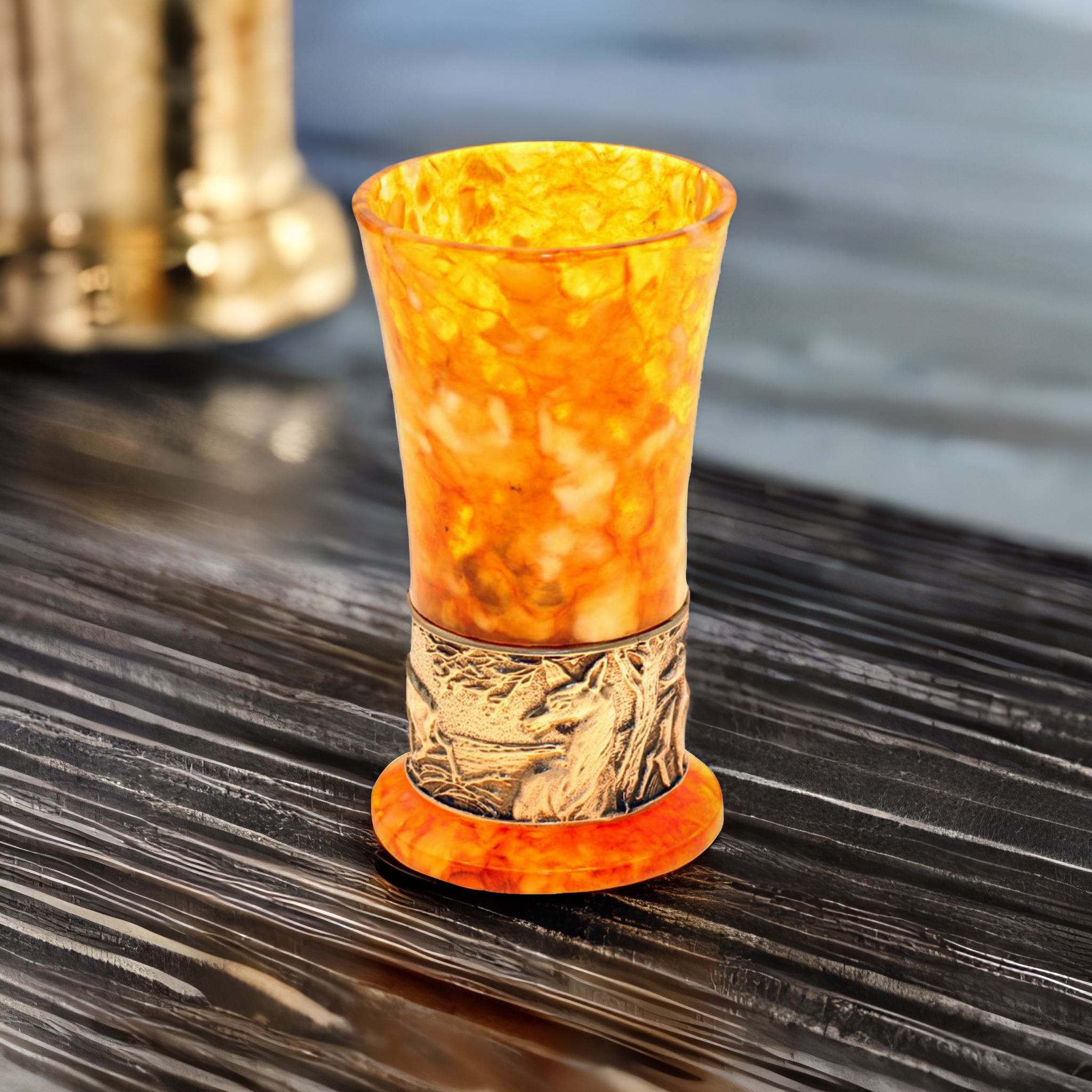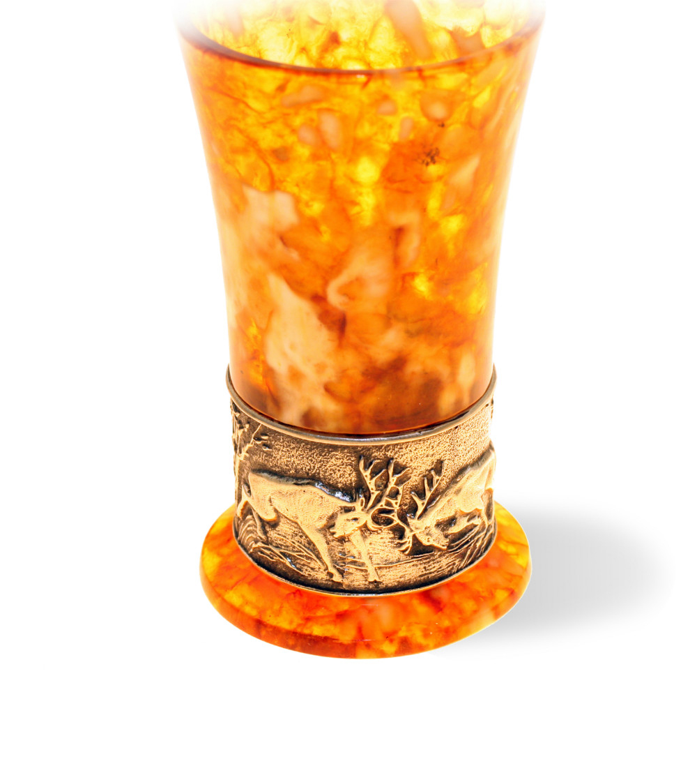 Представляем вашему вниманию эксклюзивное предложение — стопку для водки, выполненную из янтаря и украшенную бронзовыми элементами в виде сцены охоты. Сделайте свой вечер не только вкусным, но и эстетически наслажденным. Эта стопка — идеальный выбор для тех, кто ценит оригинальность и стиль. Она выполнена из высококачественного янтаря, который придает напитку особый, неповторимый аромат.