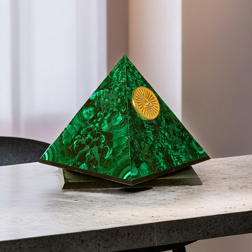 Универсальный и изысканный подарок в виде малахитовой сувенирной пирамидки — стресс-шокер с оберегом «Пирамида Всевидящее око»!