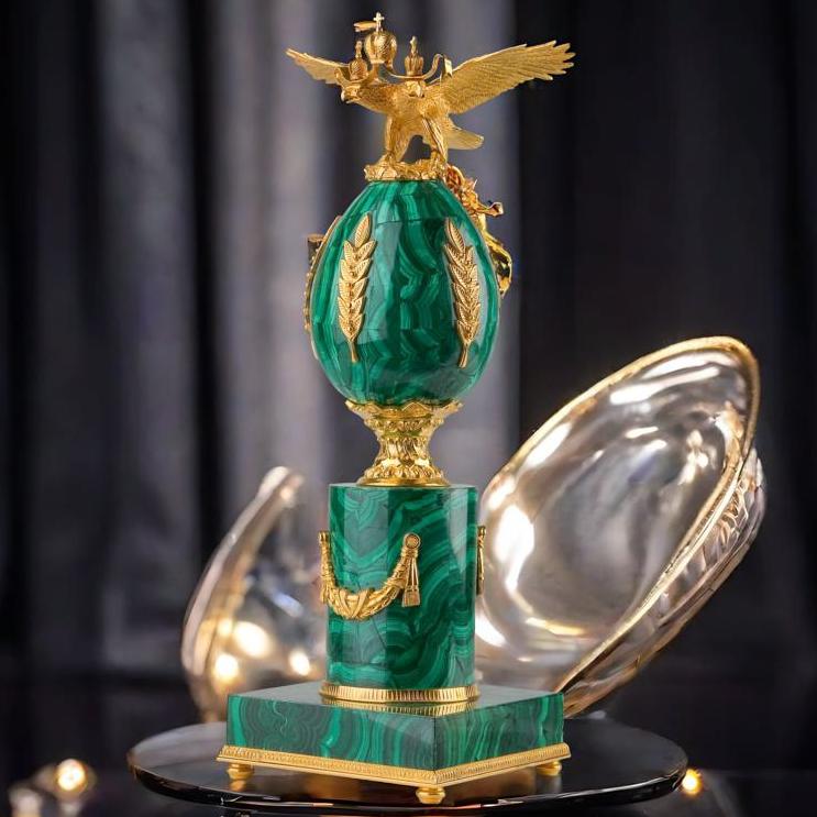 Представляем вашему вниманию изысканный и в то же время стильный сувенир под названием Имперский. Это настоящее произведение искусства объединяет силу и величие, утончённость и лаконичность. Этот изящный предмет коллекции изготовлен из натурального малахита и позолоченной бронзы. Именно такая комбинация материалов придает сувениру особенный шарм и харизму. Имперский — сложное творение ремесленников, подчеркивающее статус их обладателя. Украшение, в котором изображен двухглавый орел, символизирует силу, власть и суверенитет. Это идеальный выбор для подарка по любому случаю. Уникальность и ценность Имперского усиливаются его ручным производством. Каждый сувенир вырабатывается в единственном экземпляре и имеет свою неповторимую ауру. |
