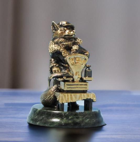 Бронзовый сувенир "Лиса-торговка"