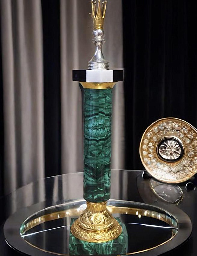 Встречайте уникальный и роскошный сувенир, который станет изысканным украшением для вашего интерьера — «Шахматный кубок». Каждый шахматный кубок является произведением искусства, воплощает в себе сочетание высокого стиля и изысканного вкуса. Основа сувенира выполнена из натурального малахита, украшения из позолоченной бронзы придают ему неповторимый шарм. Шахматный кубок — не просто сувенир, а изысканный подарок, отдающий дань уважения истории, традициям и искусству. Удивите близких и друзей стильным и эксклюзивным подарком, украсьте свой дом или рабочее место шедевром из камня и металла, подчеркните свою индивидуальность и тонкий вкус в выборе предметов декора. Вымысел? Или это реальность? Это зависит от вас... |