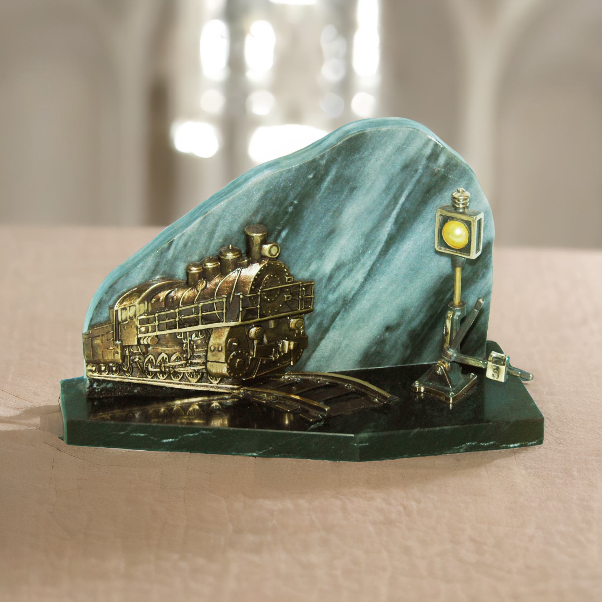Вы в поисках уникального подарка для близкого человека или нужен оригинальный сувенир, который украсит Ваш интерьер? Тогда обратите внимание на нашу новинку — бронзовый сувенир Железнодорожный! Этот эксклюзивный сувенир выполнен формате настоящего паровоза, символизирующего силу, мощь и развитие железнодорожного транспорта в прошлом столетии. Кроме того, в комплекте идет железнодорожная стрелка, которая тоже выполнена из бронзы и является идеальной деталью, подчеркивающей общую тематику набора.