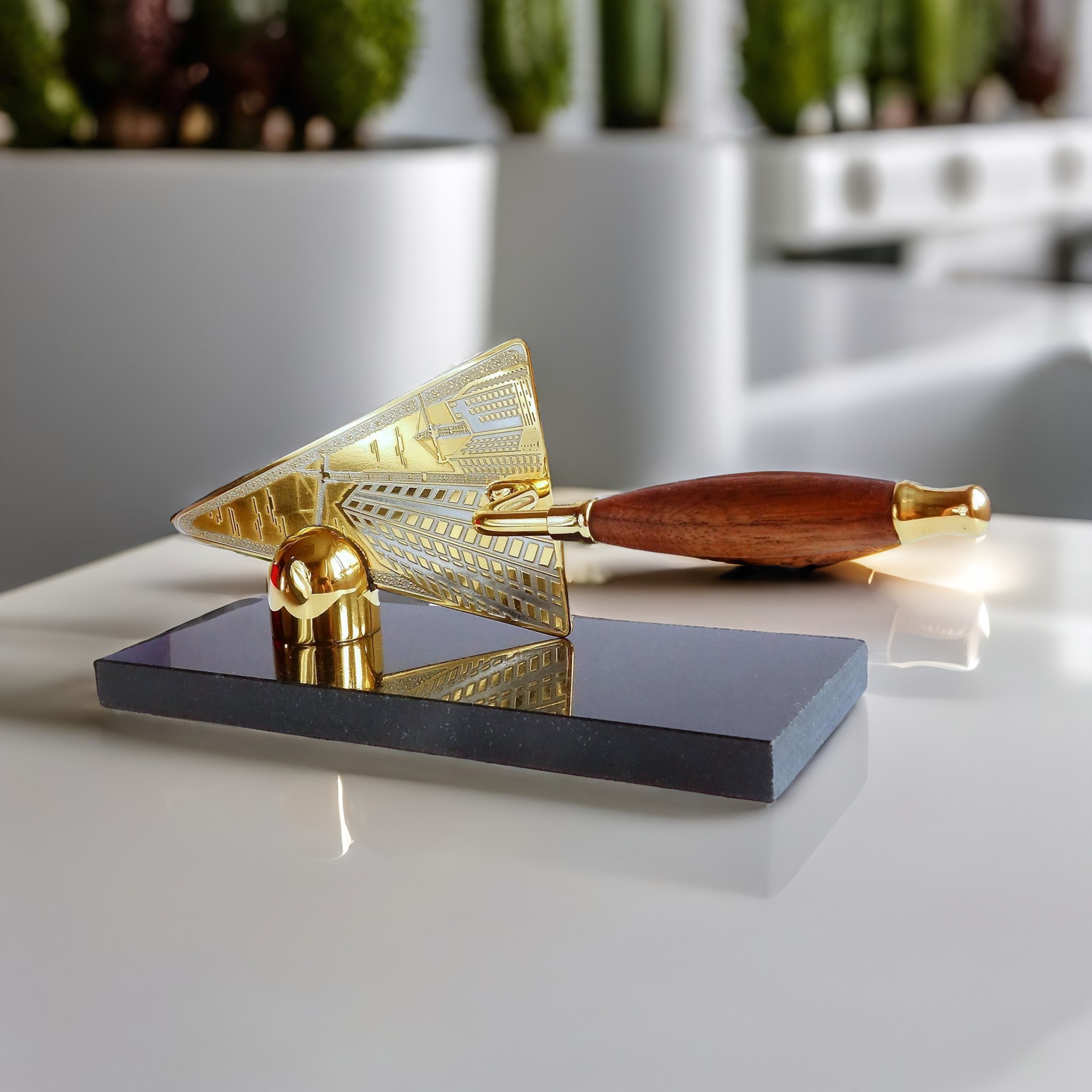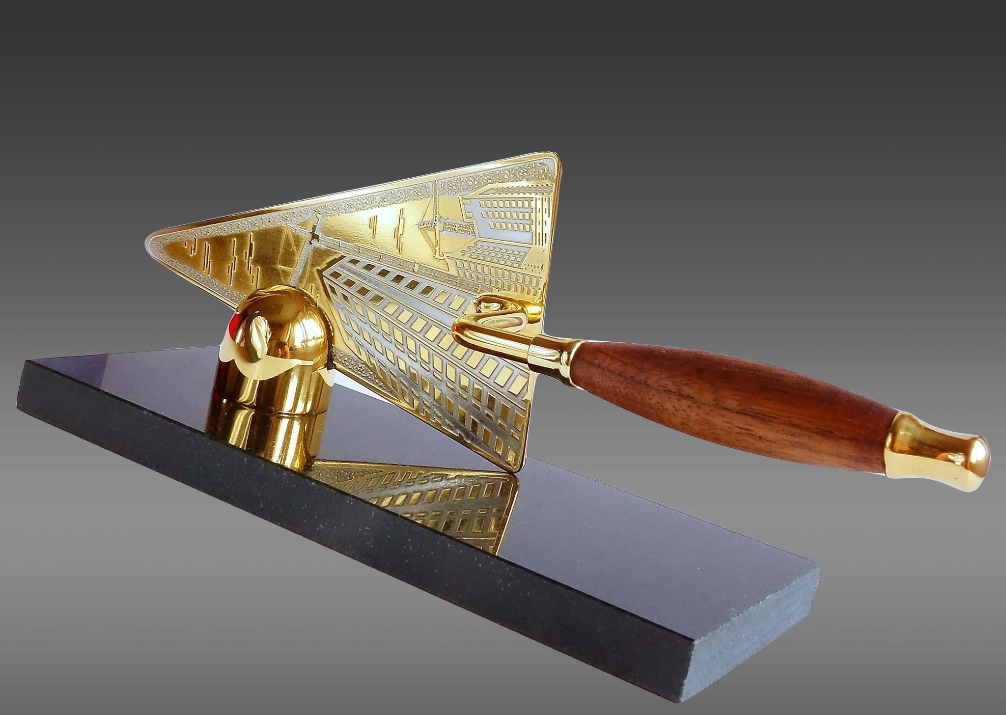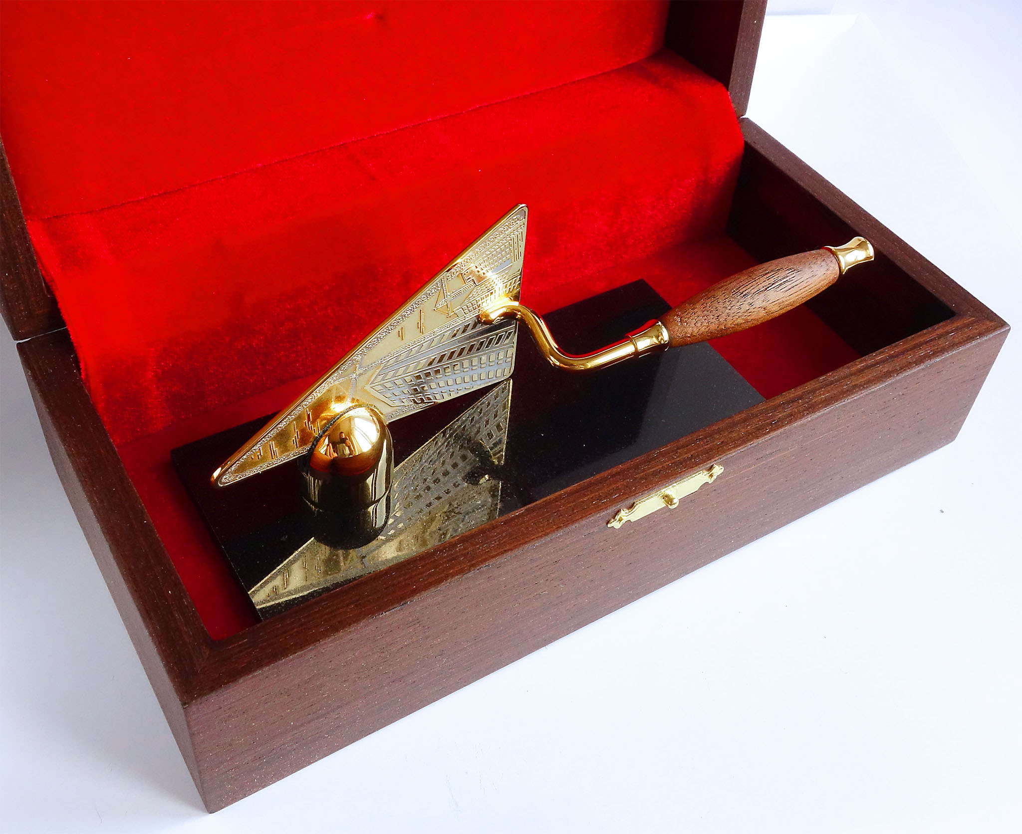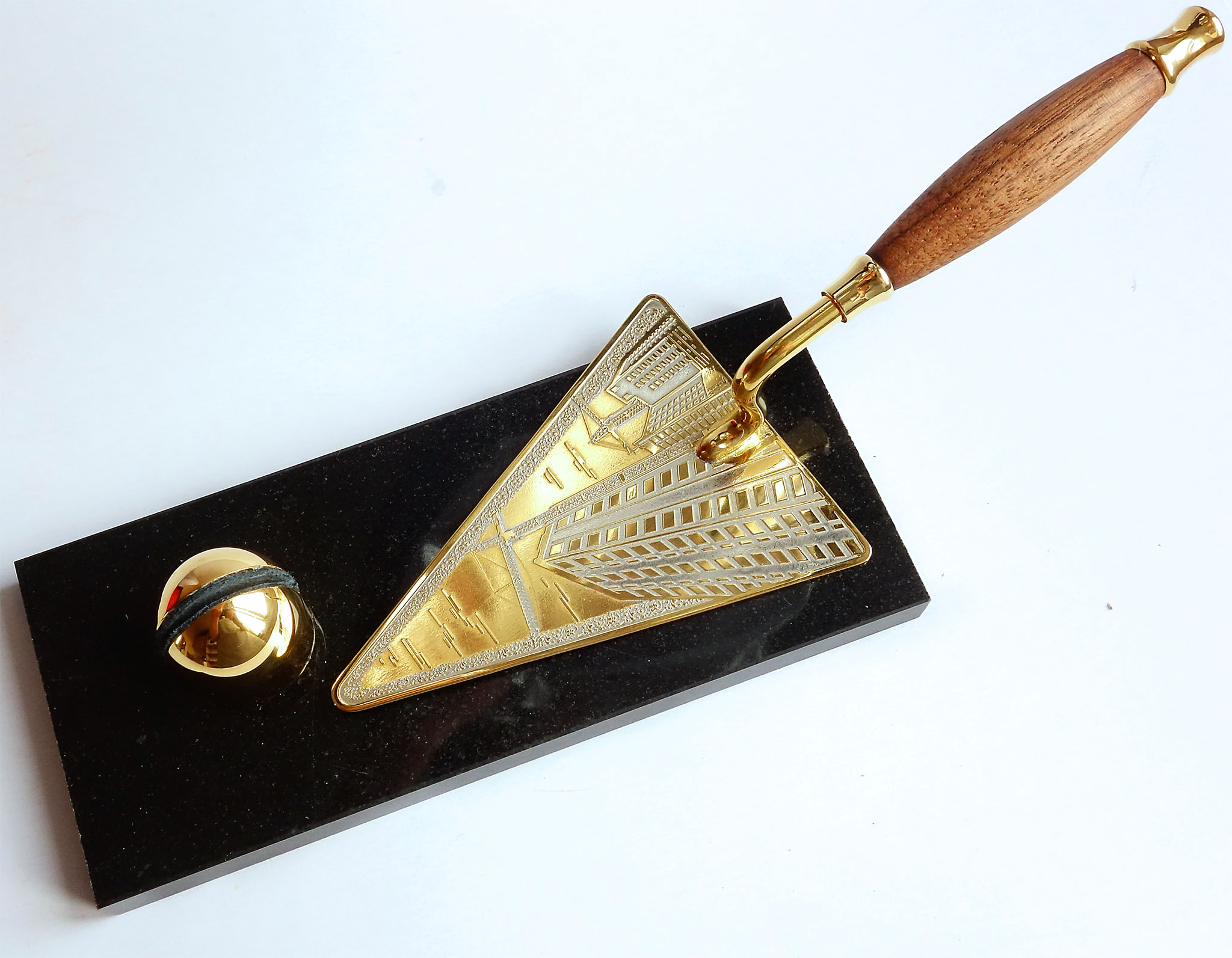 Коллеги подарили на день строителя такой сувенирный мастерок. Ни разу не видел такие настольные сувениры, очень красивый. |
