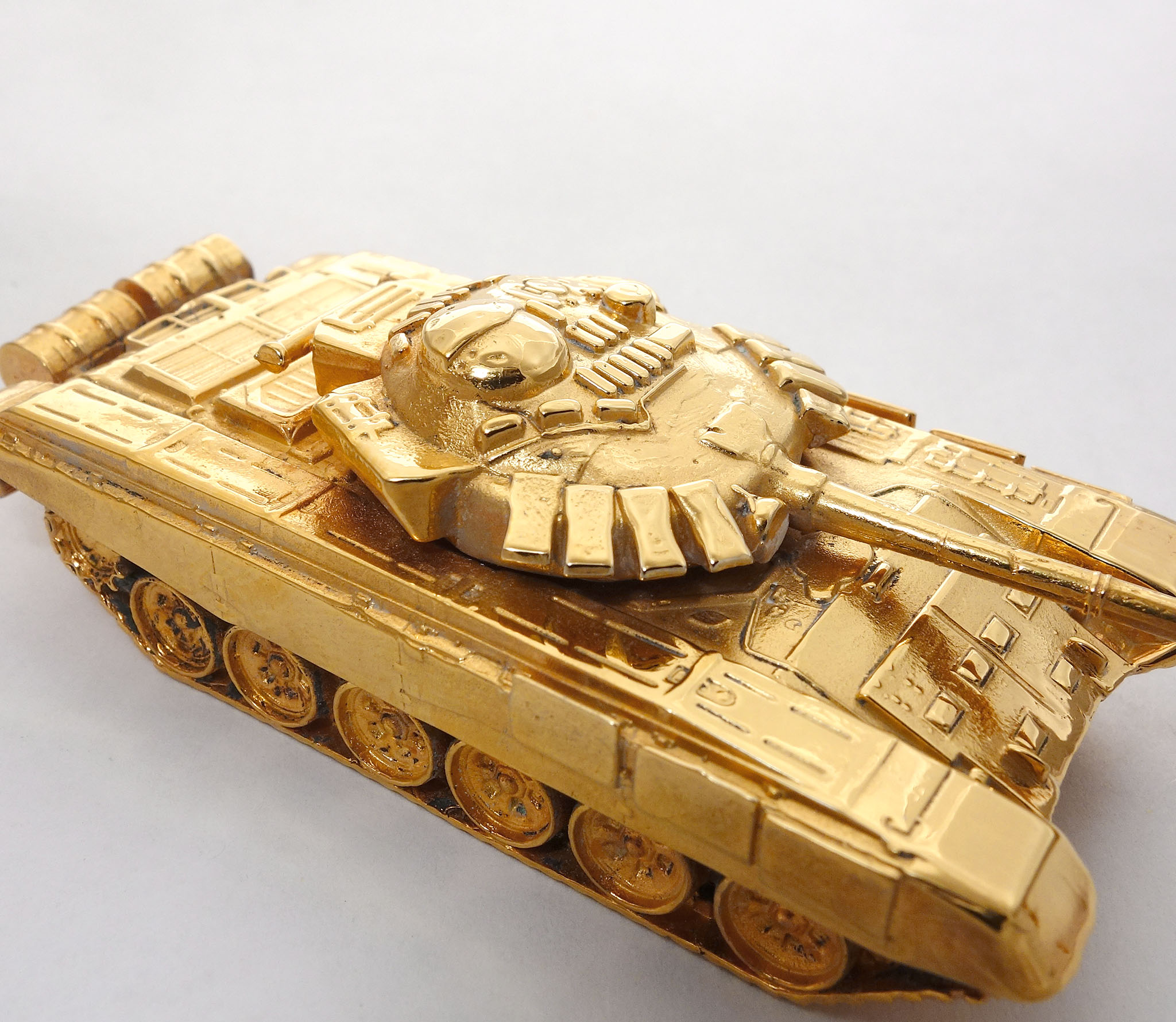 Вы давно мечтали о владении внушительным символом силы и мощи? Задумывались о том, чтобы украшение вашего кабинета было чем—то более значительным, нежели просто обычная статуэтка? Тогда у нас есть для вас новость! Теперь наши мастера готовы предложить эксклюзивный и ограниченный поставкой продукт — Бронзовый танк Т—72М1М (позолоченный). Невообразимая детализация каждого элемента, величественность и мощь этого исторического образца военной техники — все это теперь может стать частью вашего интерьера. Более того, это может стать прекрасным подарком для человека, который ценит военную историю.
