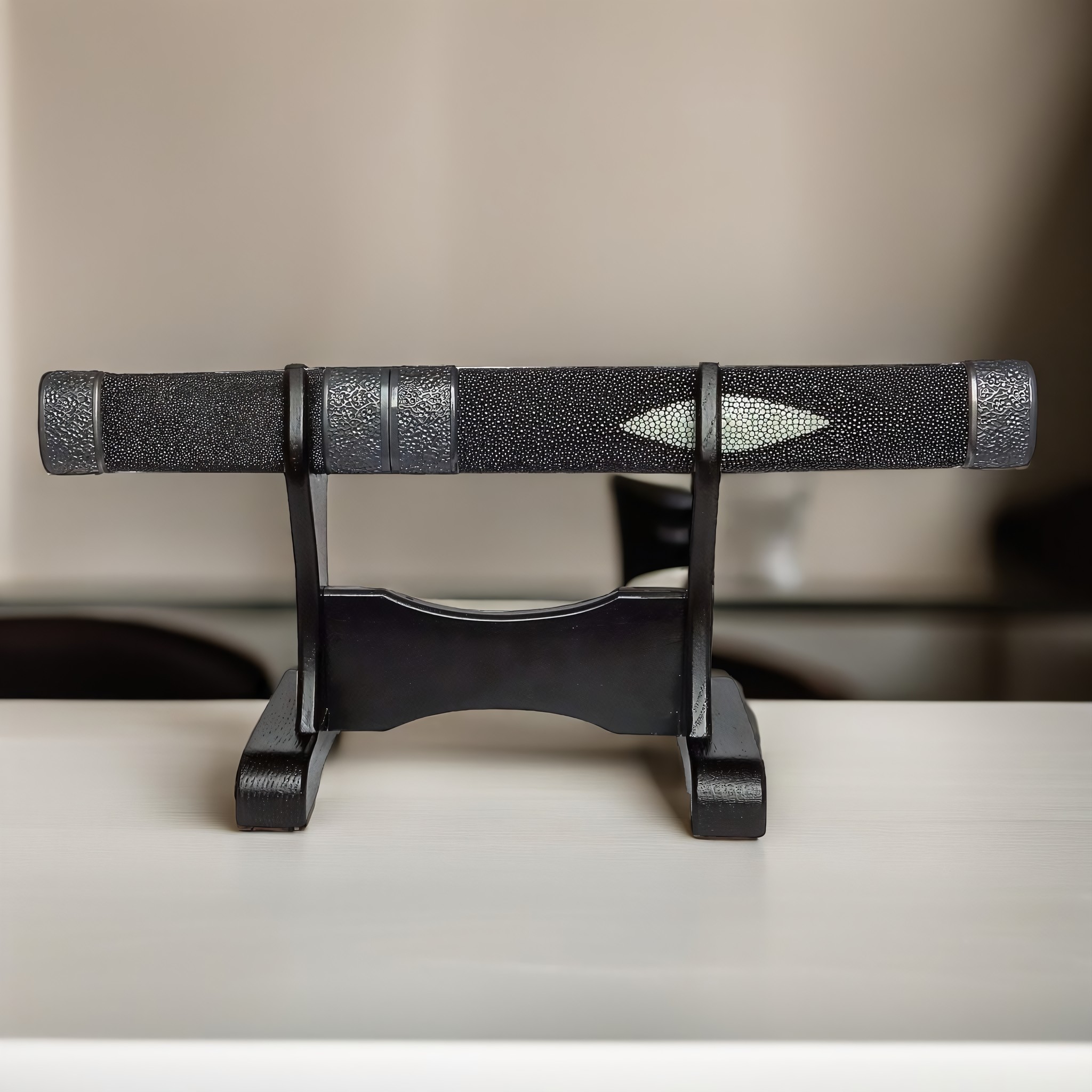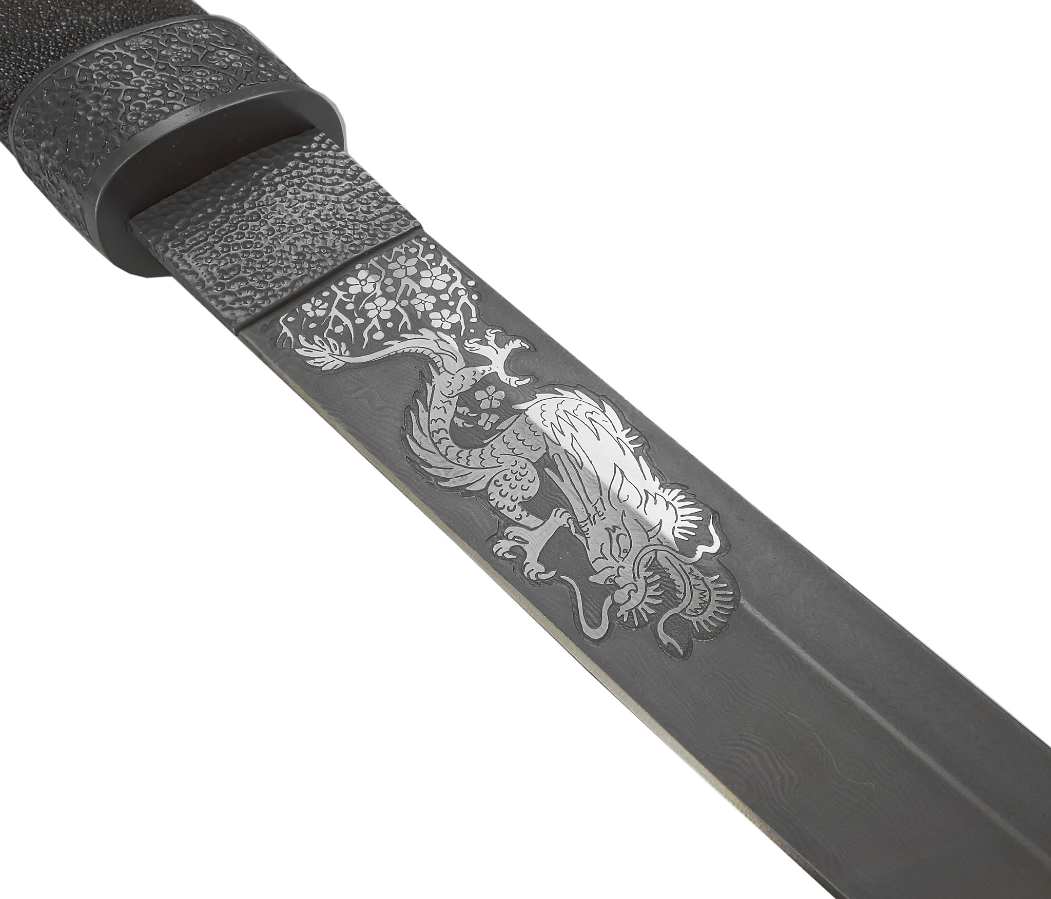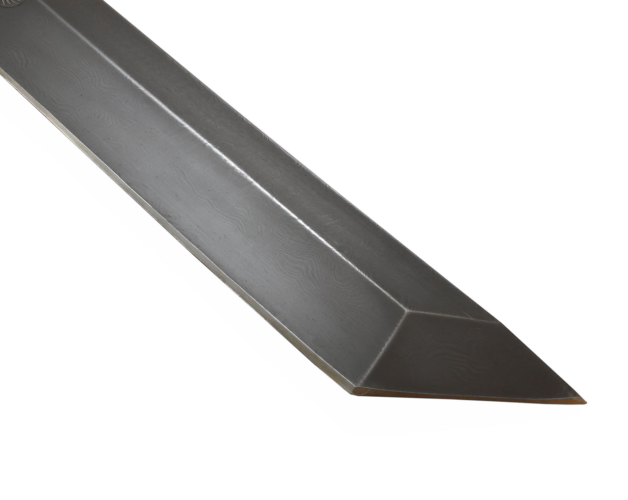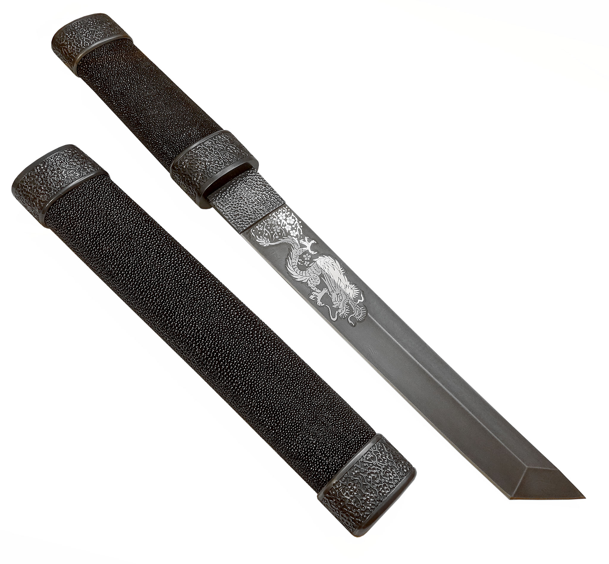 Стилизованный самурайский нож - танто «Белое око» изготовлен из нержавеющей дамасской стали и изумительно украшен в черно-белых тонах. Нож мастерски выкован по современной технологии художественной ковки вручную, поэтому является изделием эксклюзивным и неповторимым. Такой подарок порадует любого ценителя восточной культуры, а также приятно удивит как любимого мужчину, так и коллегу по работе. |