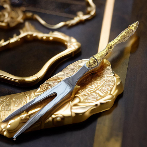 Вилка для мяса Волк — это не просто столовый прибор. Это символ силы и мощи, качества и стоящего вкуса. Авторский дизайн и внимание к деталям делают ее не просто удобным инструментом, но и истинным украшением вашего стола. Рукоять вилки создана в виде волка — животного, которое с давних пор воспринимается как символ силы и власти. Рукоять изготовлена из высококачественной бронзы и покрыта толстым слоем золота. Это придает вилке незабываемый шик и блеск. Каждая вилка проходит тщательный контроль, и мы гарантируем, что очарование этого изумительного предмета столового сервиза не оставит вас равнодушным. Вилка для мяса Волк — подчеркнет ваш статус и привлечет восхищенные взгляды гостей. Пришло время обеда или отмечаете особый вечер? Не упустите возможность использовать вилку для мяса Волк. Этот эксклюзивный сервизный предмет завершит ваш стол и привнесет в него немного дикой роскоши. |