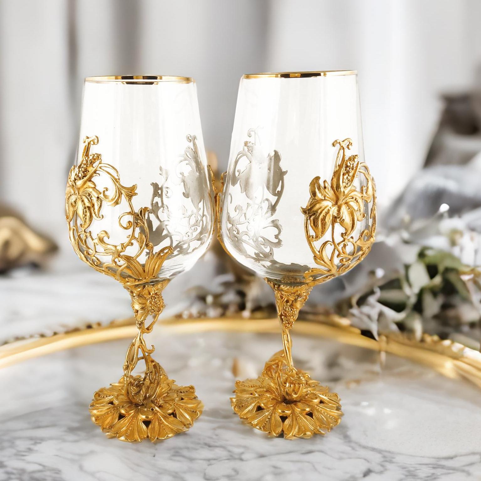 Представляем вашему вниманию роскошную подарочную винную пару Цветок. Это уникальное изделие из позолоченной бронзы в виде цветов станет великолепным подарком для настоящих ценителей изысканного дизайна. Позолота — это вечная классика, символ роскоши и изысканности. Изделия с позолотой обладают невероятной притягательностью и глубоким, солнечным оттенком.