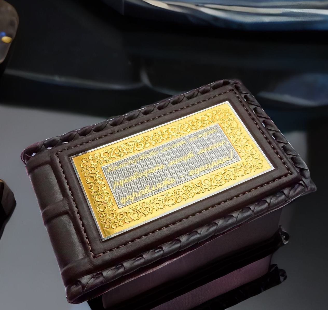 Эта элегантная кожаная визитница из Златоуста идеально подойдет в качестве подарка для руководителя. Изготовленная из качественной кожи, она выглядит стильно и профессионально. Визитница украшена мотивационной цитатой, которая напомнит руководителю о важности его роли и вдохновит на новые достижения. Кроме того, такая визитница станет отличным инструментом для хранения и организации визитных карточек. Она позволяет не только аккуратно хранить контакты, но и производит благоприятное впечатление при вручении своей визитки. |