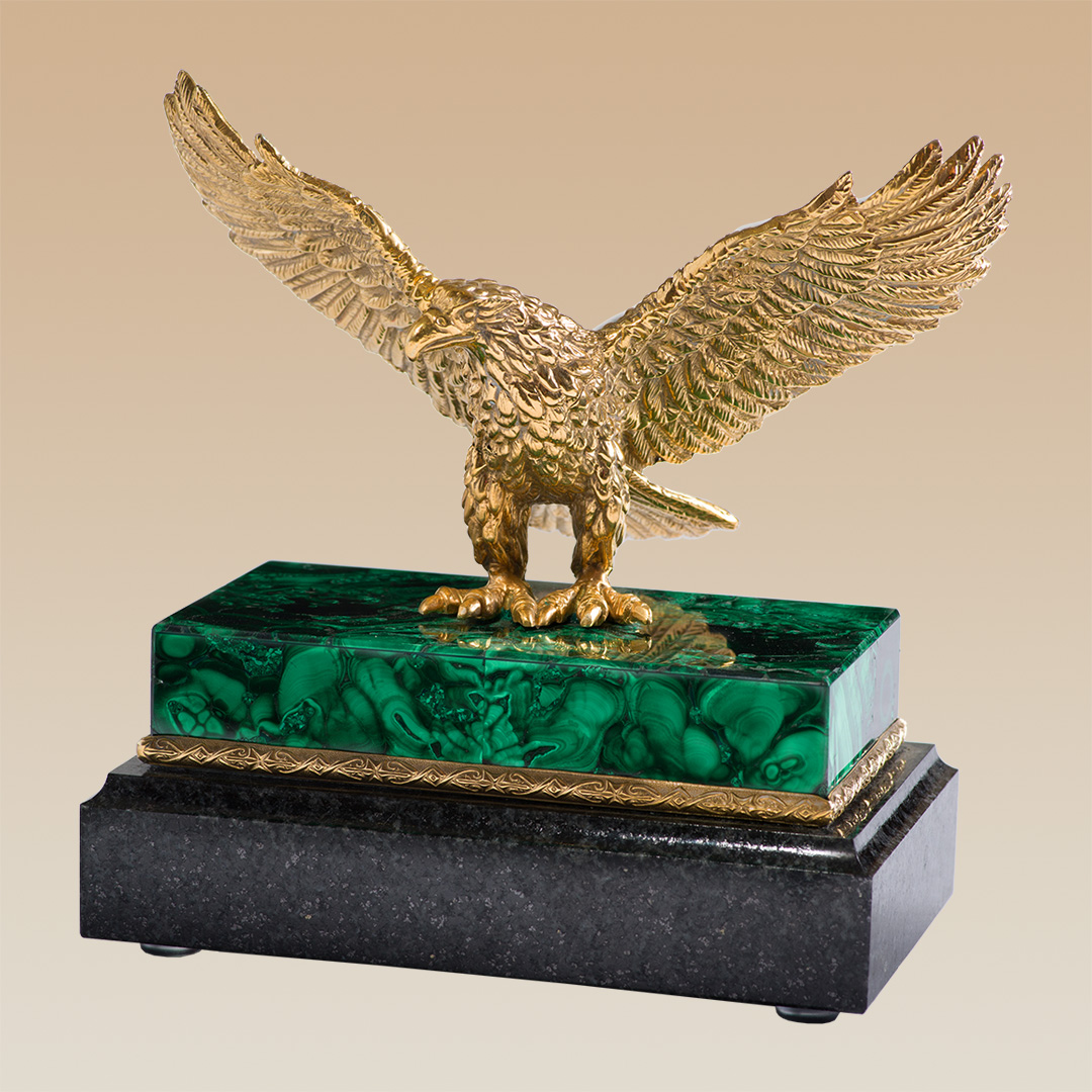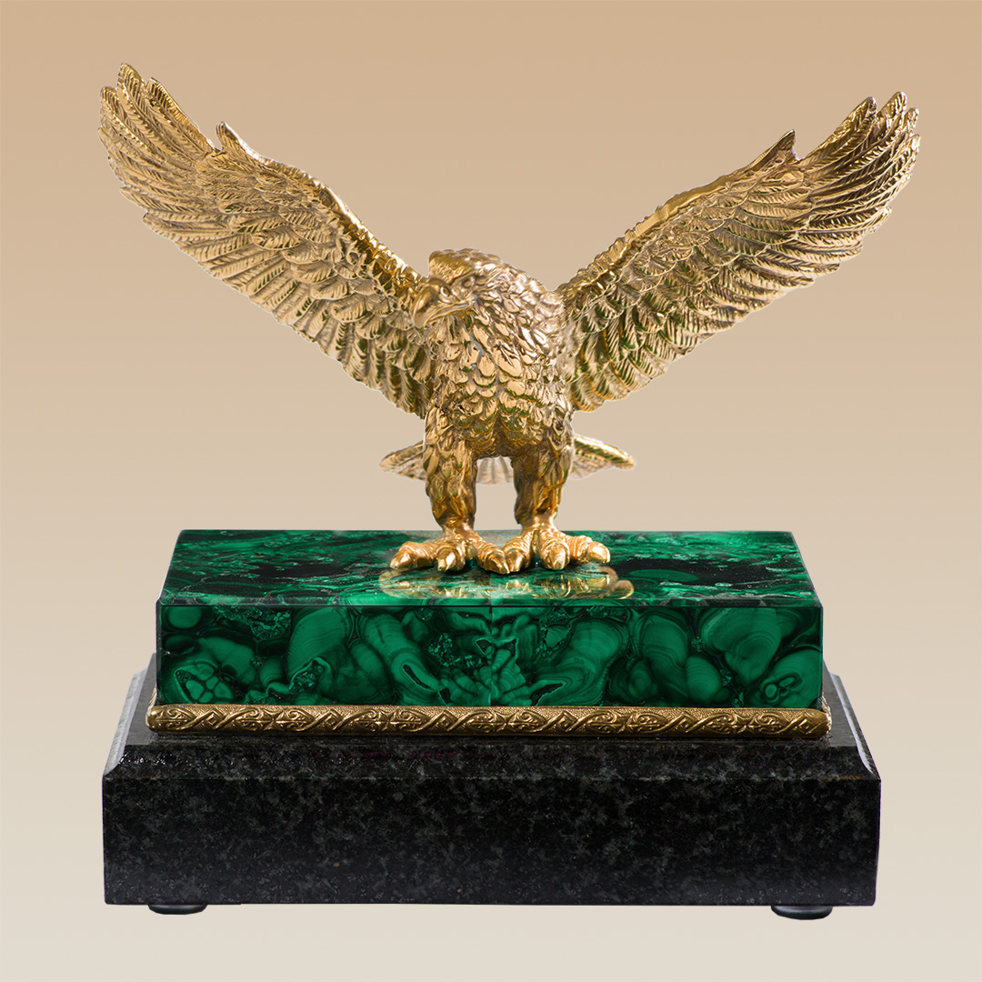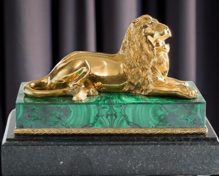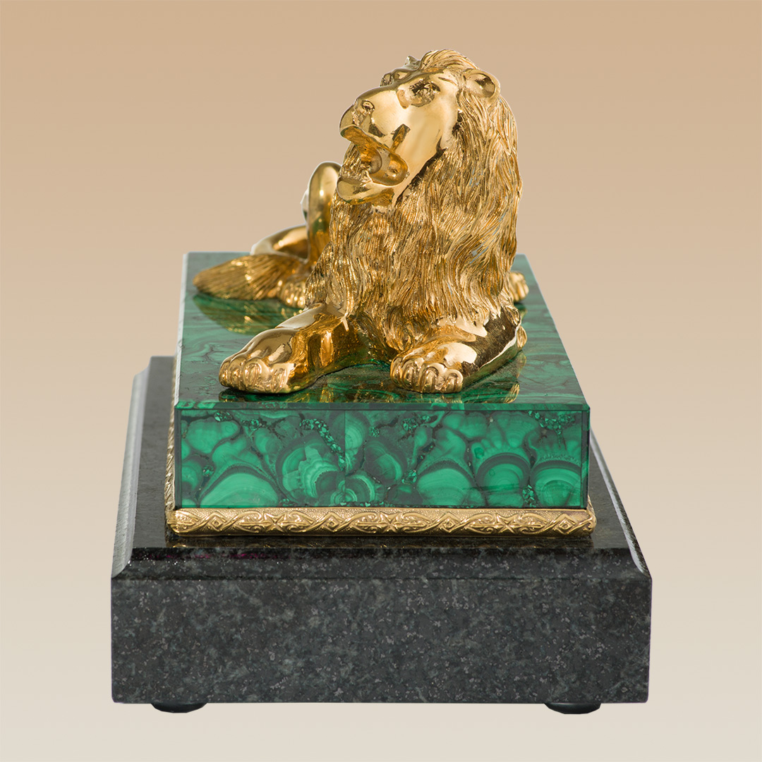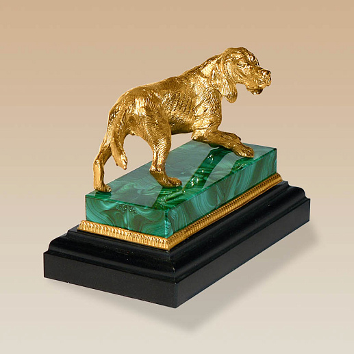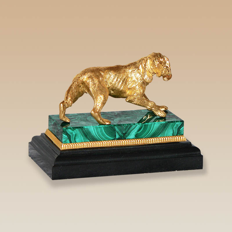 Фигурка животного станет отличным подарком для всех, кто неравнодушен к животным. Основание выполнено из ценной горной породы – долерита, пьедестал – из натурального малахита, животное – из чистой бронзы, сияющей золотым блеском. В зависимости от пожеланий заказчика, можем создать абсолютно любую фигурку. |