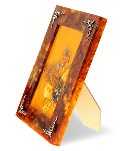 Не упустите возможность приобрести этот невероятный аксессуар. Добавьте немного роскоши в свою жизнь с нашей фоторамкой из янтаря с бронзовыми элементами. |